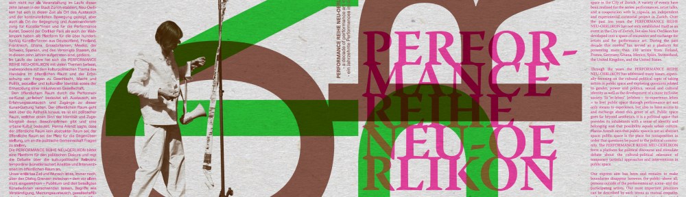After all these years, the PERFORMANCE REIHE NEU-OERLIKON has already established itself not only in Neu-Oerlikon as a place of performance art, but also as an important discussion platform in the city of Zurich. It has been positioned in the public space, with a view to exchange and dialogue between artists and the audience. The direct contact between art and people is also encouraged.