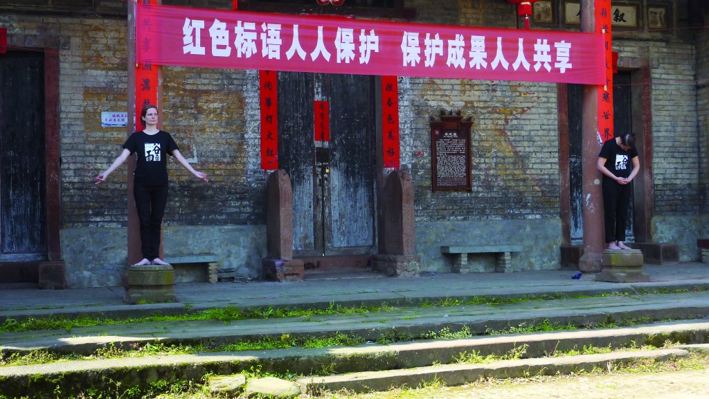 Yara Li Mennel comes from contemporary dance and explores her poetic language by blending her movement knowledge, with sound-voice improvisations and clownery.