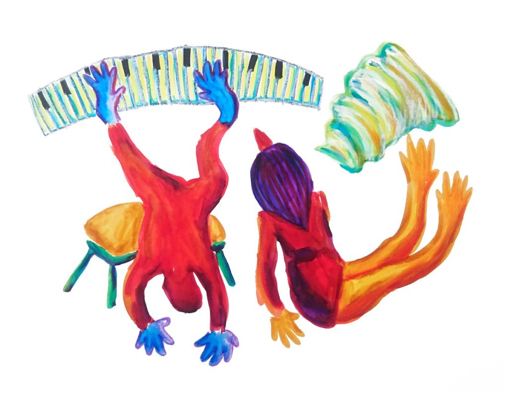 Anna Rigamonti comes from the visual arts and explores a variety of arts disciplines, including writing (poetry), drawing and painting, performance and voice improvisation.